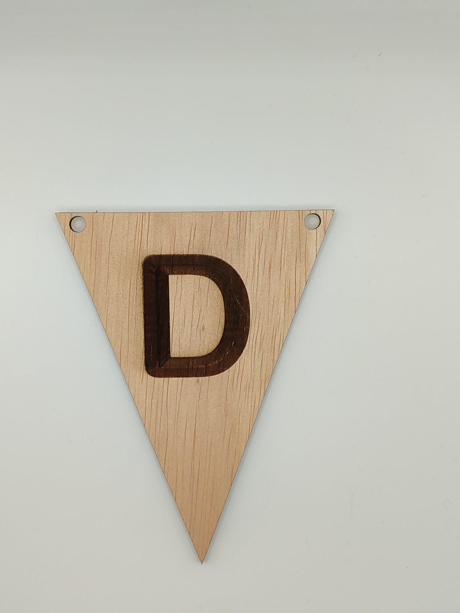 Dit houten vlaggetje met de letter D is met laserprecisie uitgesneden uit duurzaam hout. Dankzij het tijdloze ontwerp past het perfect bij verjaardagen, kinderkamers en feestdecoratie.